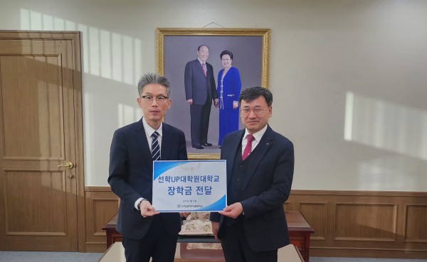 천일국 13년 천력 12월 10일(양력 1월 28일), 오주희 협의회장(홍천군 사회복지협의회)의 장학금 전달식이 선학UP대학원대학교 총장접견실에서 개최됐다. 행사에는 도현섭 총장과 김인수 글로벌인재처 처장, 김도희 글로벌인재처 차장이 참석했다.